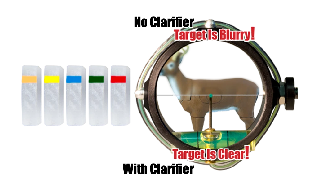 - The Clarifier works with a bow scope and lens to help clear up the target, allowing you to pick out target details at a distance.