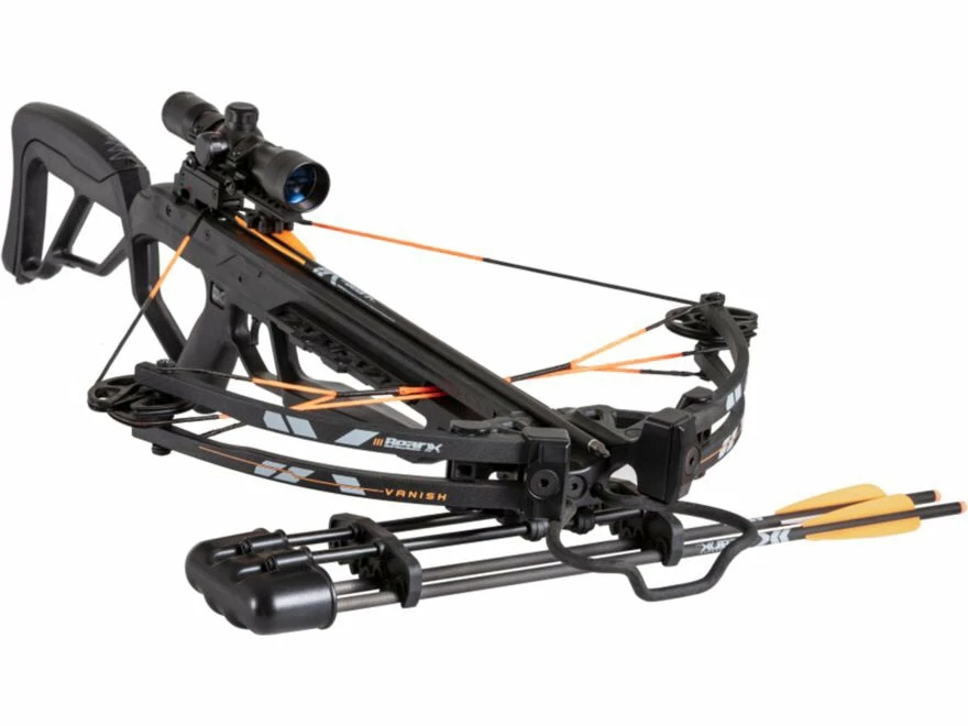 - This ready-to-hunt package includes 3 carbon bolts, scope, quiver, cocking rope, and rail lube / string wax