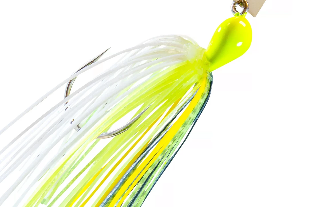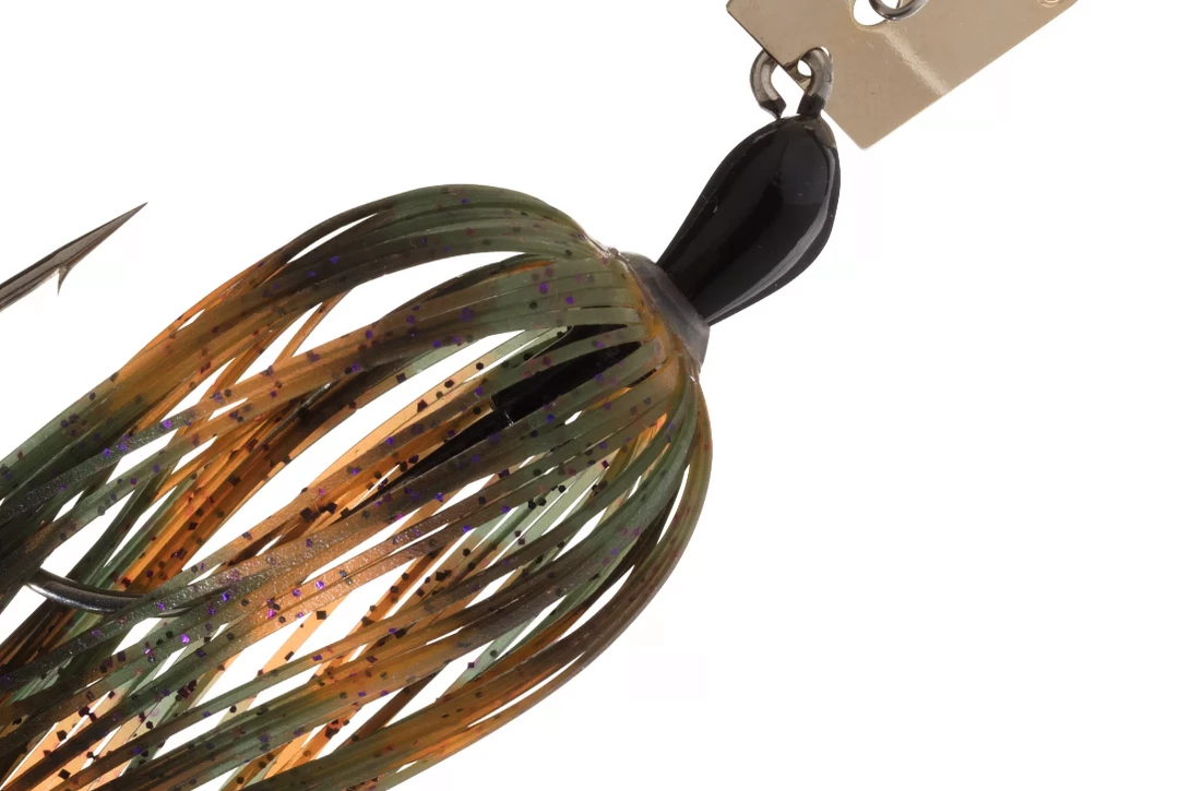 - Flash of a spinnerbait, vibration of a crankbait, and profile of a jig combined in a single bait