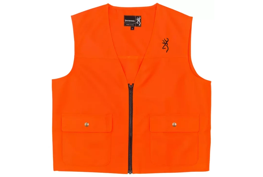 Stay visible and safe out in the field with this bright blaze Safety Overlay Vest from Browning®. This Vest features a zip front, back license loop, and two large snap flap front shell pockets. Browning Buckmark embroidered on chest. Imported.