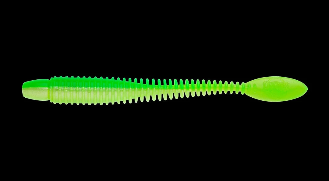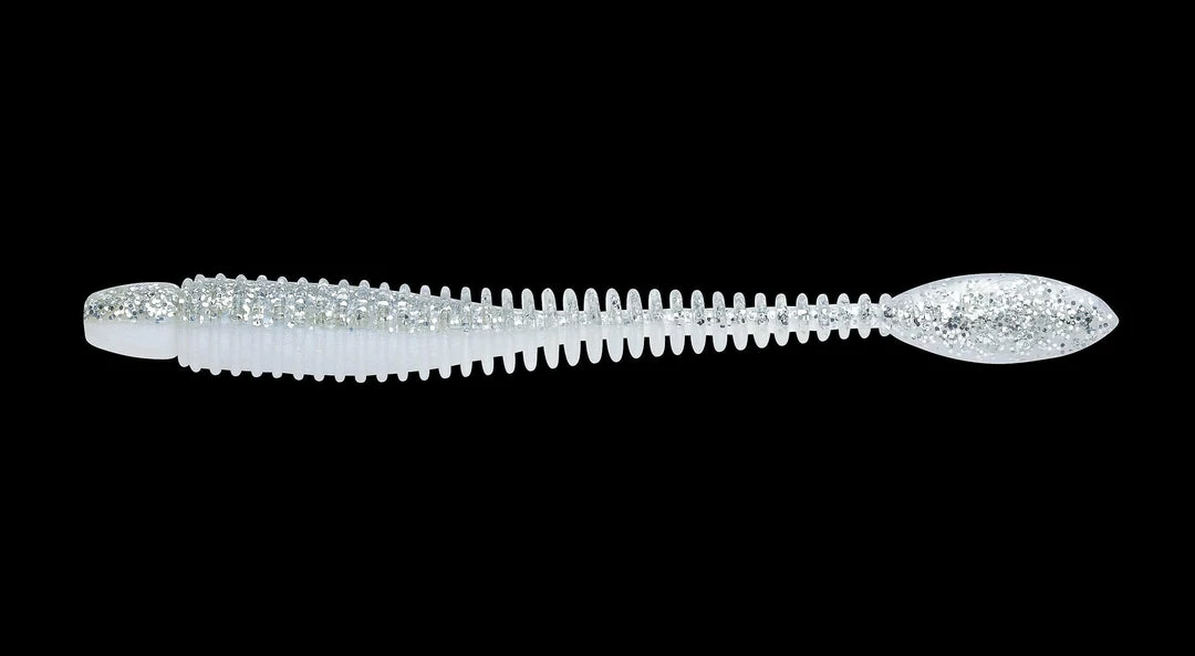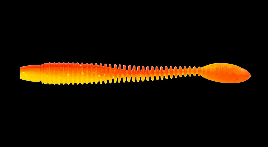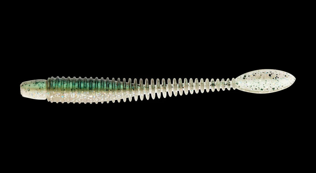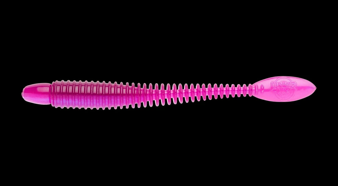 The ringed body style allows this worm to project the appearance of a fat body while the substantially smaller diameter of the core allows flexibility impossible to attain in a worm that appears to be as Fat as the lure appears.
