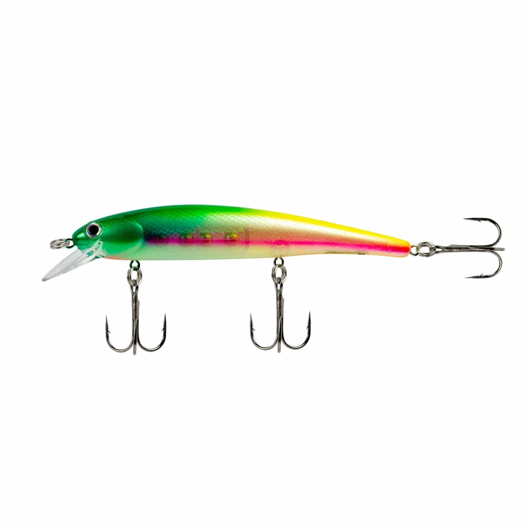The Bandit B-Rotan might be the loudest jerkbait ever created. Dual rattle chambers hold four nickel steel balls which create an unmatched thumbing sound that will cut through the muddiest of water to attract fish. The wide wobble and extremely exaggerated swimming motion add to the attractiveness when fish close in for an inspection of the commotion. Built off the proven chassis of the Bandit Walleye Shallow and Walleye Deep, the B-Rotan is 4.625 inches long and weighs 5/8 of an ounce. It can be cast or trolled. When retrieving, it hits eight feet deep. Trolling gets it down to 16. Natural forage patterns and brighter designs makes the Bandit B-Rotan a mutli-species weapon for bass or walleyes.Â