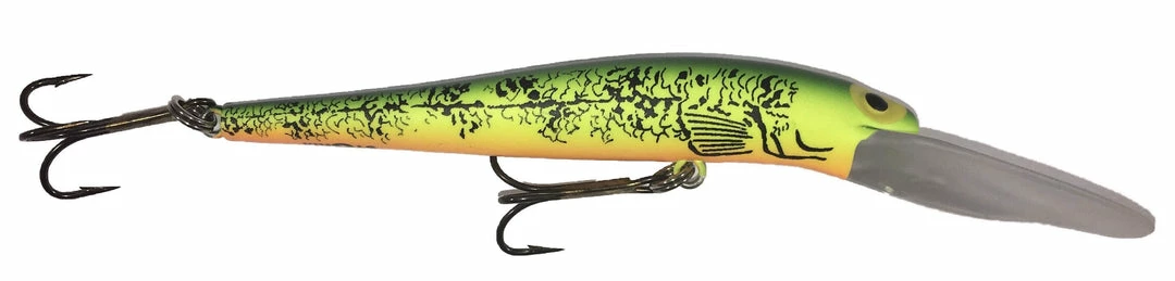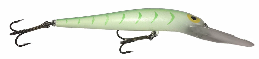 | Color | Hot tiger, Gold Chart Speckles, Metallic blue Scale/RE, Lum/Green (Glow), Metallic Yellow Black, Metallic Silver Black, Naturalistic Perch, PrizmFlash Black Back, PrizmFlash Gold Shiner, PrizmFlash Purple Back, Red Hot Tiger, Silver Scale, Solid Chartreuse, Metallic Rainbow Trout, Olive Chartreuse Glow |