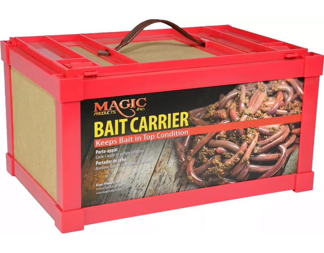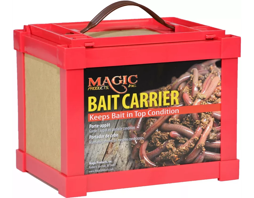 Not only does the Magic Bait Carrier make it easy to carry bait, it also ensures it stays fresh. Just moisten the fiberboard and evaporation will work to keep the interior cool. Durable construction features composite fiberboard, high-impact polystyrene frame and easy-carry handle. Includes Magic Worm bedding and instructions. Made in USA.