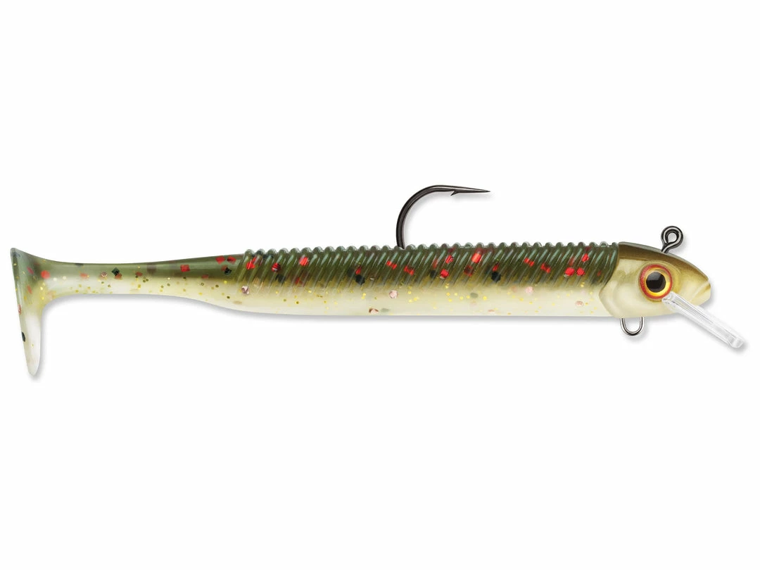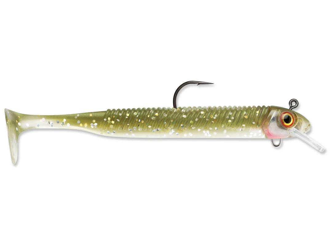 The 360GT Searchbait® Swimmer has a molded diving lip that adds crankbait action and depth control. Exclusive VMC® Coastal Black® hook with extended “leg” on line tie to further enhance action. 60° angle keeps lure swimming in the perfect position. Life-like rattling jig head and body fit precisely, with color patterns that perfectly match regional forage.