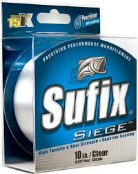 The Sufix Siege Fishing Line is engineered with XV2 Technology to provide better strength to diameter capacity, resulting in smooth handling that rockets your lure farther and with greater accuracy. Also features 15 times more abrasion resistance. G_ Precision Windingâ„¢ virtually eliminates line memory, even on spinning reels.Â