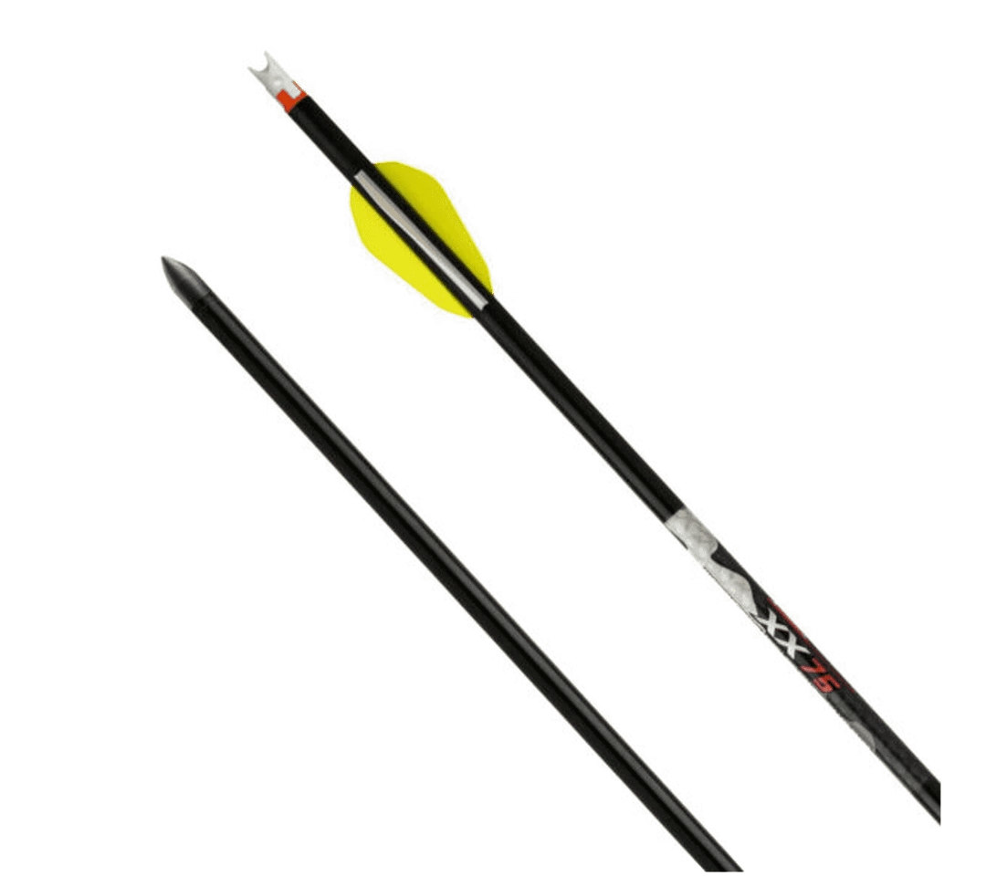 XX75 20-inch 2219 aluminum arrow is fletched slightly offset and is fitted with a 13-grain aluminum insert 2.0″ Easton